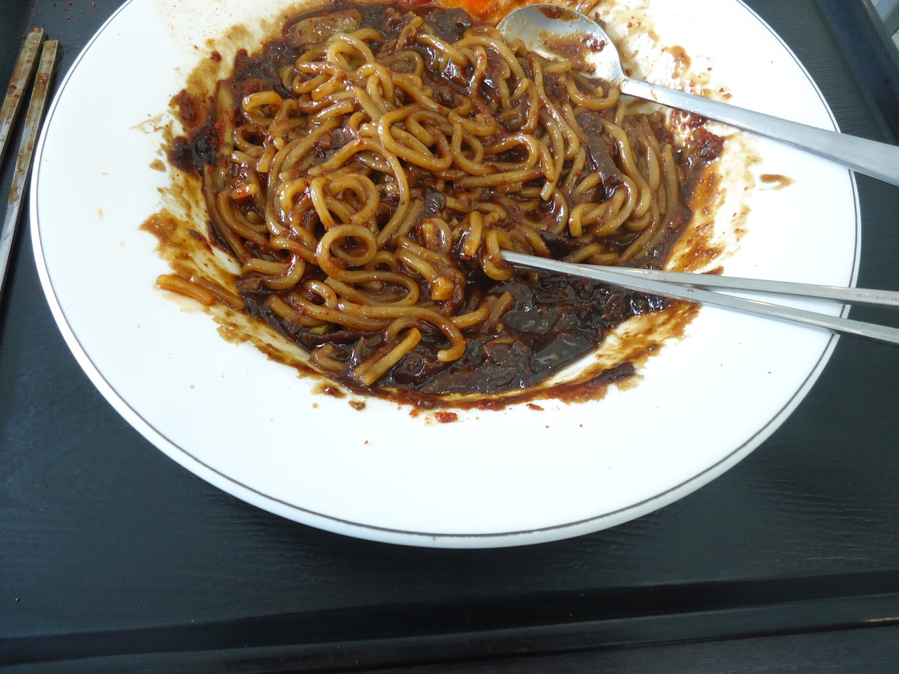 when I was there I also tried one of the most famous korean food ever, jajangmyun. in korean dramas jajangmyun looks soooooooo yummy, makes you feel hungry just looking at it. so i tried it, and… hmm.. not my favorite korean food. one word, tasteless! but i still want to eat it every time i see it tho :p