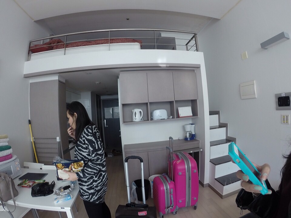 I went with 5 of my friends, we stayed at an apartment in Gangnam area. It is a duplex room. we booked it from airbnb.com and the web said that it can fit up to 5 people. But in my opinion, it is too small to fit 5 people + our huge luggage. The apartment is located very close to Gangnam station, less than 2 min by walk! However, the location, Gangnam district, is kinda far from all the young places. Overall it was an okay room located in a nice area, but If you’re traveling more than 3, I wouldn’t recommend this place to you.