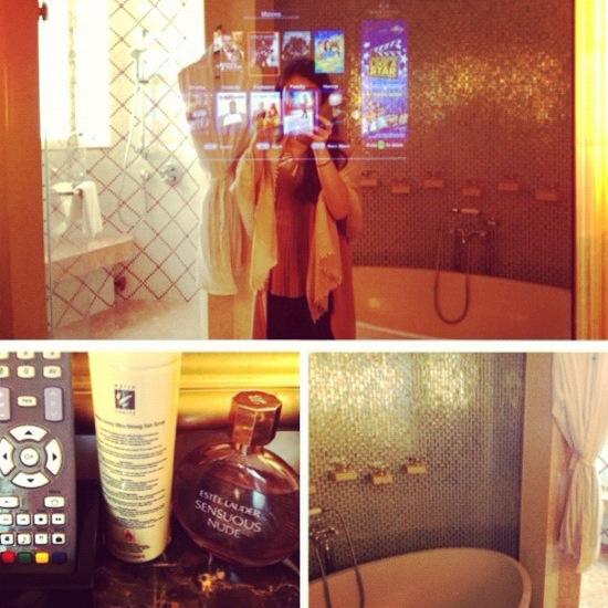 In the bathroom, there’s a tv on the mirror, which was really cool hahaha